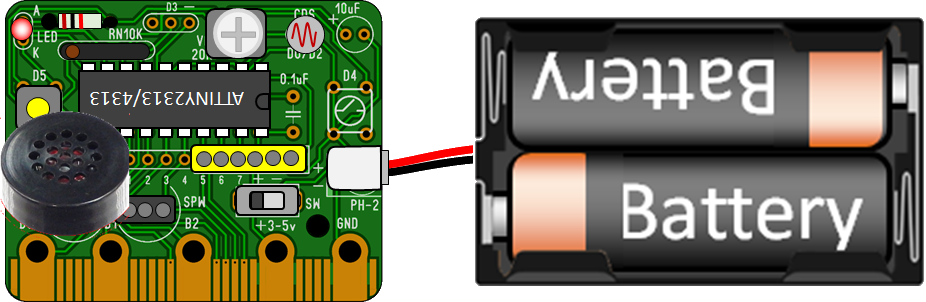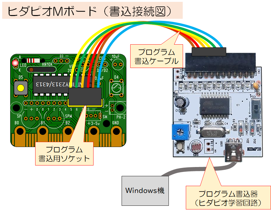 書込器(ヒダピオ学習回路など)でプログラムの書き込みができる。