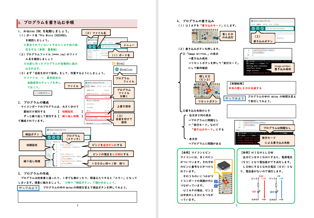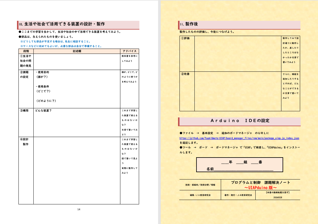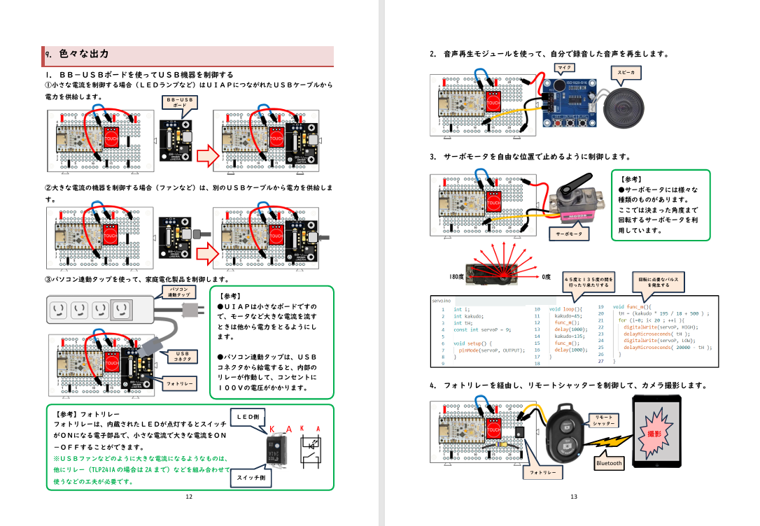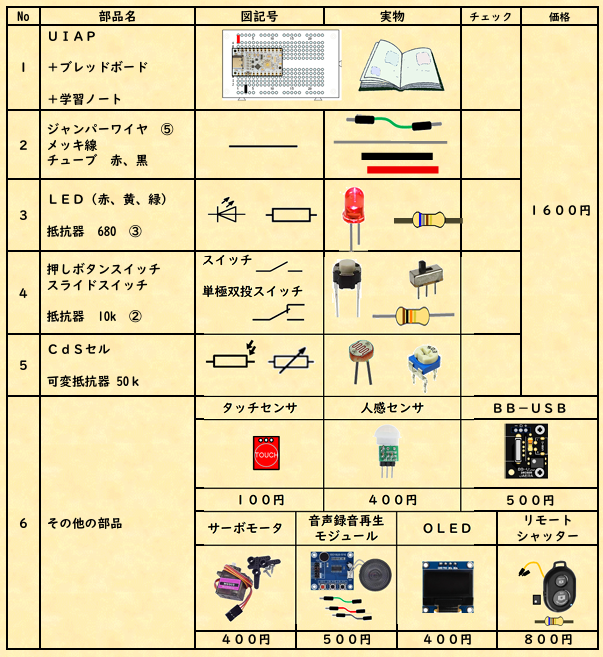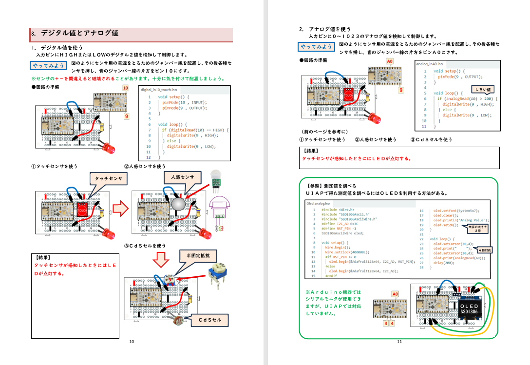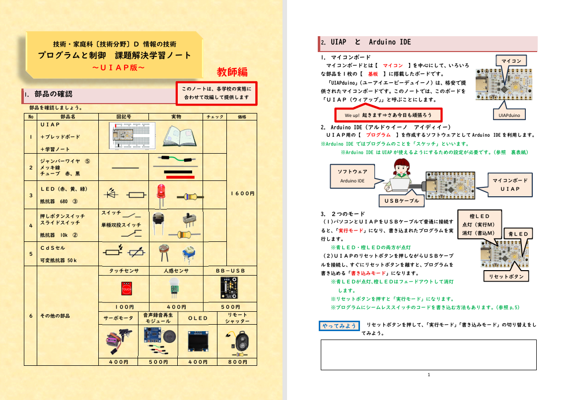 ●UIAPduinoとUIAP ●教材セット例 ●学習ノート 申し込み方法