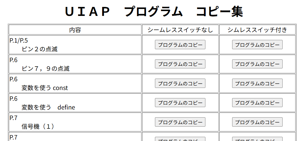 ●学習ノートの中で利用するプログラムをボタンを押してコピーし、Arduino IDEに貼り付けることができます。