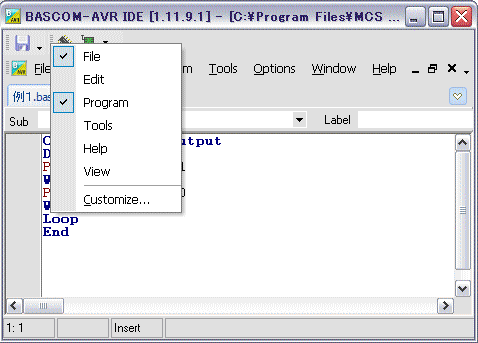 ※「BASCOM-AVR」はプログラムの作成、コンパイル、書き込みまでが一つのソフトウェアでできます。