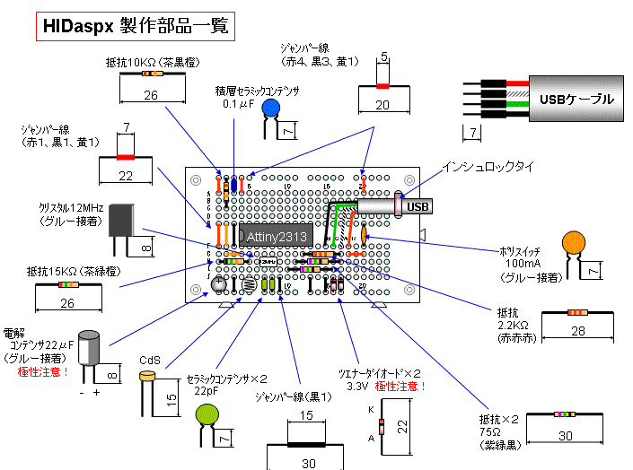 ■ブレッドボード版HIDaspxの製作【3時間】