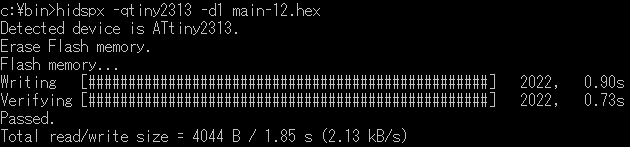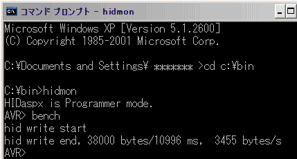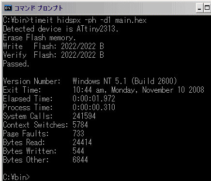 - ●HIDspx.exeで書き込む時間を手動で計る。 ( hidspx main.hex )