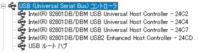 - 【コントロールパネル】→【システム】→【ハードウェア】→【デバイスマネージャー】→【USBコントローラ】