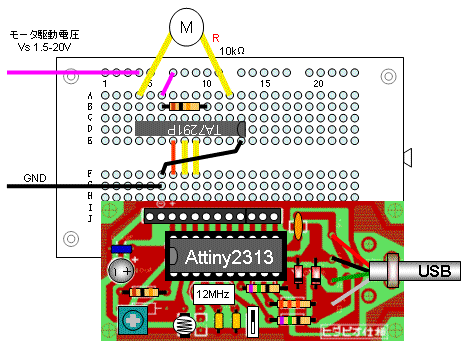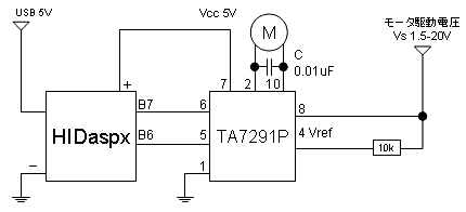 ここでは、モータを正転、反転させるUSB-IOモータ制御回路について紹介します。