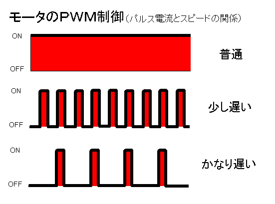 ●PWM:制御端子の単位時間におけるOn:Off時間比でモーターの回転数を決めるモード