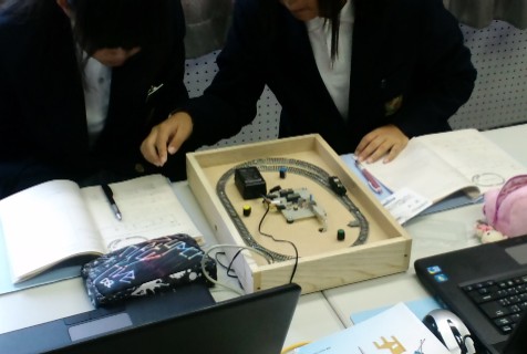 レールにポイントをセットして、ポイントを切り換えて、車庫に入るプログラムを考えよう。