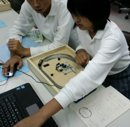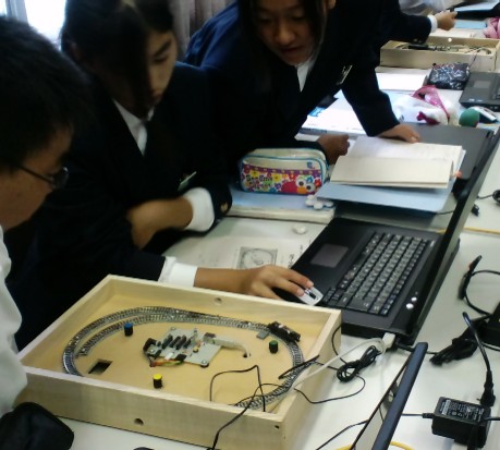 授業用にNゲージにHIDaspxと制御回路を載せた実験器具を10セットつくりました。