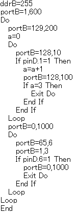 ●ポイント焼損防止マイコンのBASCOM-BASICのプログラム例(ポイントが1個の場合)