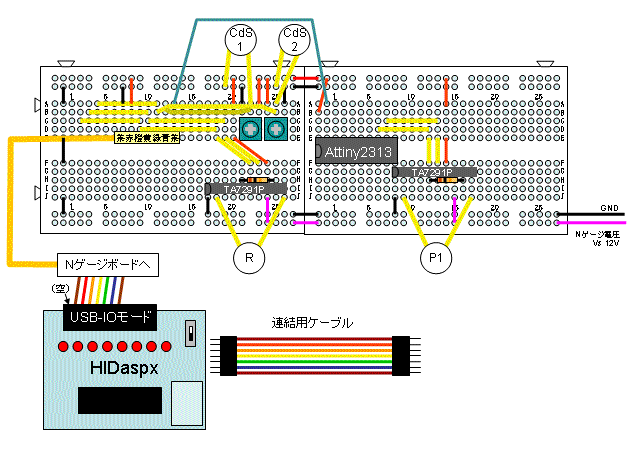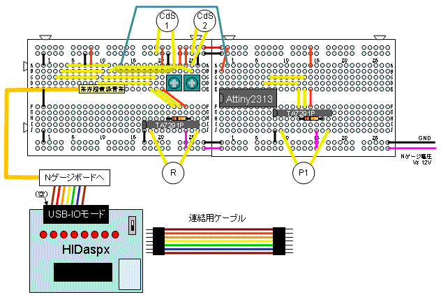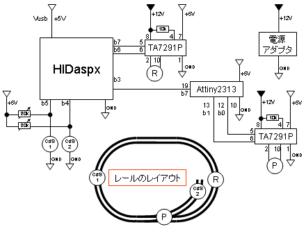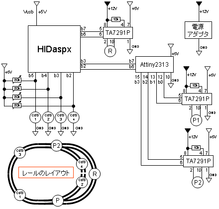 そのため教材を破損から守る意味で、ポイント切り換え用マイコンを製作した。