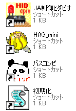 ・ja_hidapio\フォルダ 内に「JA制御ヒダピオ」「バスコンピ」「HAG_mini」「初期化」のショートカットが生成される。