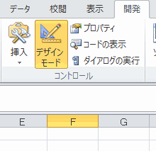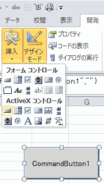 (3)「開発」タグから「挿入」ボタンを押し、ActiveXコントロールの中のボタンを貼る。