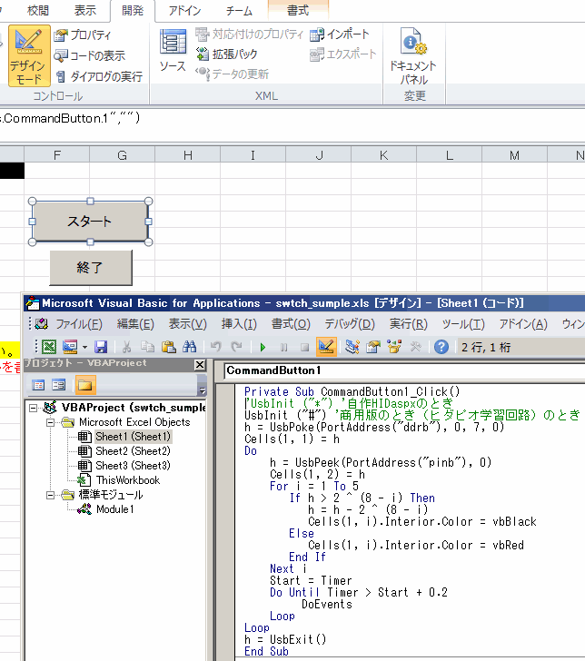 UsbInit ("*") '自作HIDaspxのとき UsbInit ("#"):商用版のとき(ヒダピオ学習回路)のとき